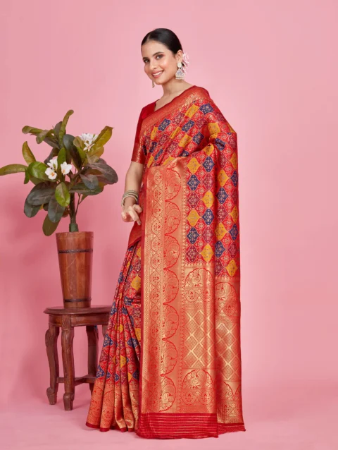 Women’s Woven Design Patola Art Silk Saree With Blouse Piece 2
