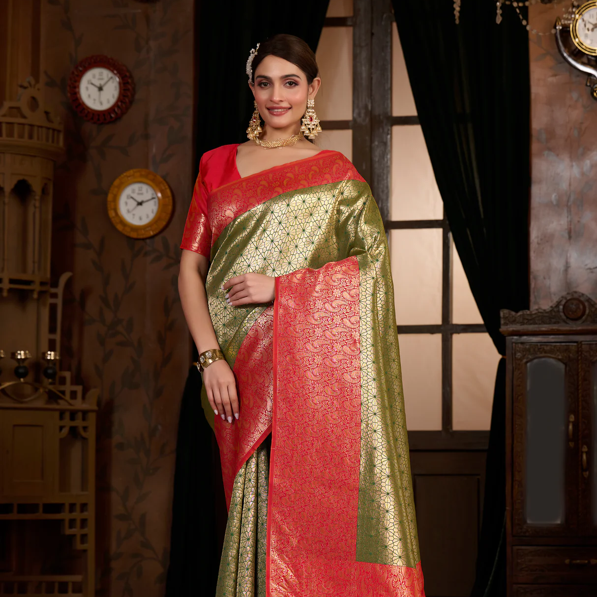 Women’s Woven Design Kanjivaram Style Art Silk Saree With Blouse Piece 6