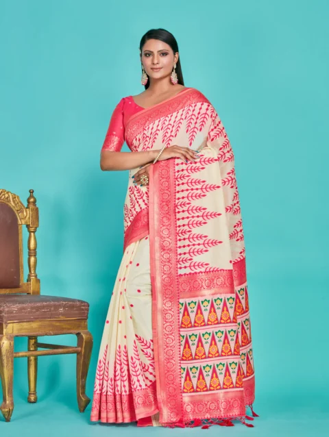 Women’s Woven Design Banarasi Linen Saree With Blouse Piece 2