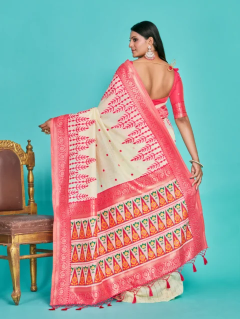 Women’s Woven Design Banarasi Linen Saree With Blouse Piece 5