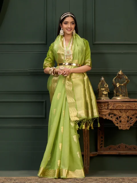 Women’s Woven Design Banarasi Orgenza Saree With Blouse Piece