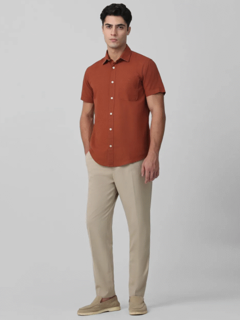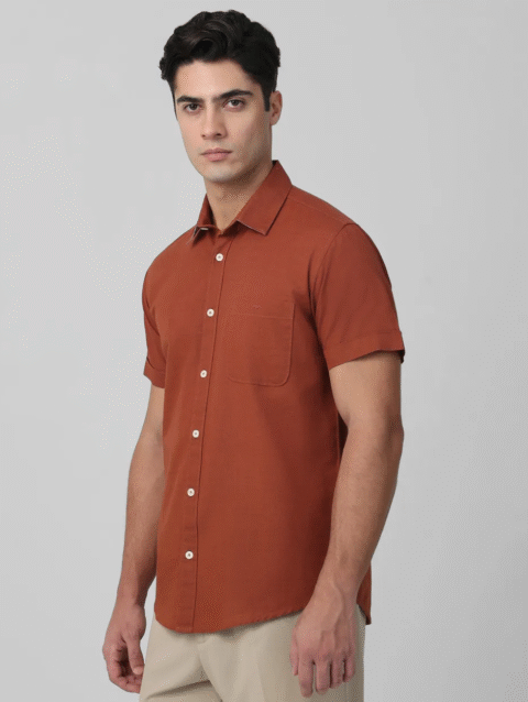 Rust Cotton Linen Plain Slim Fit Casual Shirt
