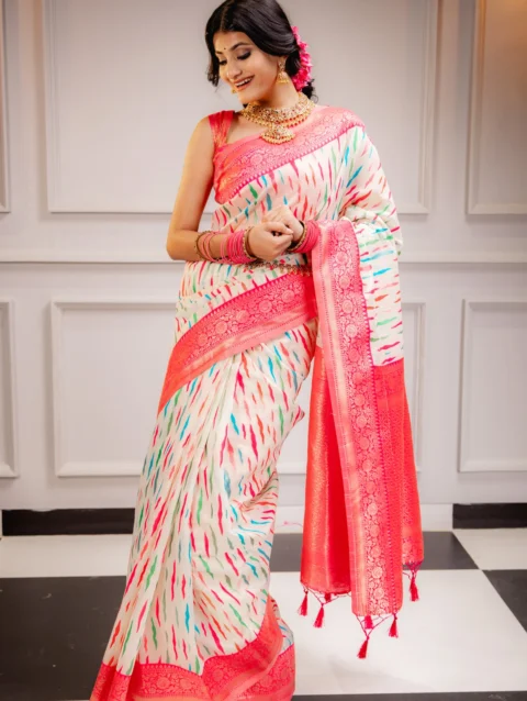 Women’s Woven Design Banarasi Orgenza Saree With Blouse Piece 3