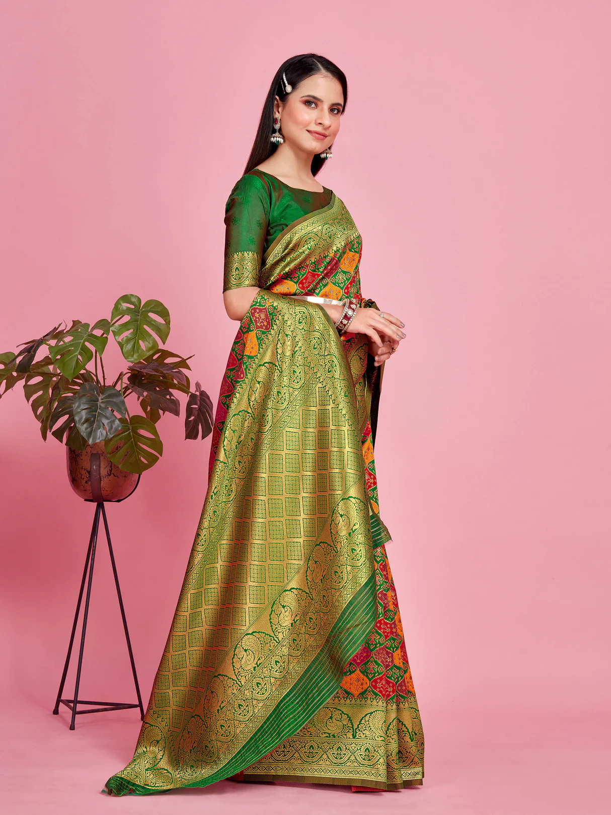 Women’s Woven Design Patola Art Silk Saree With Blouse Piece