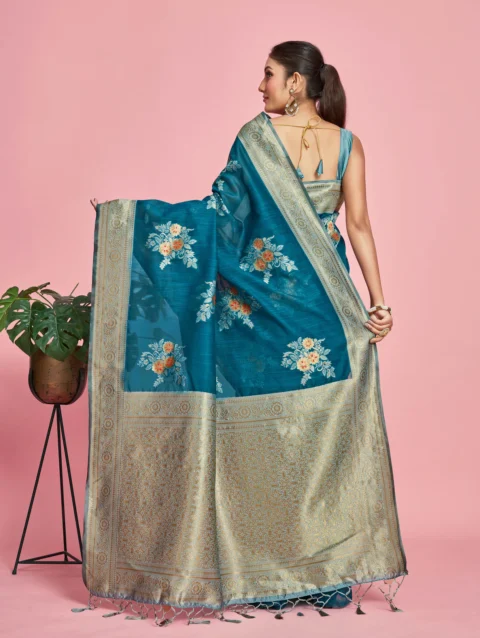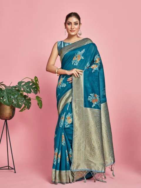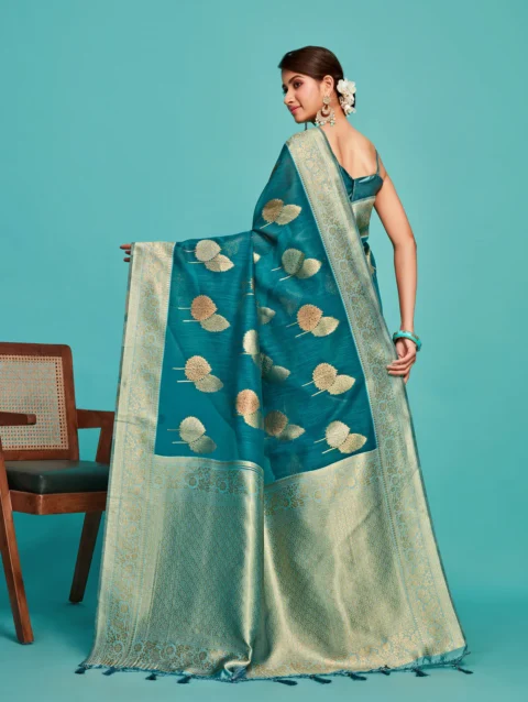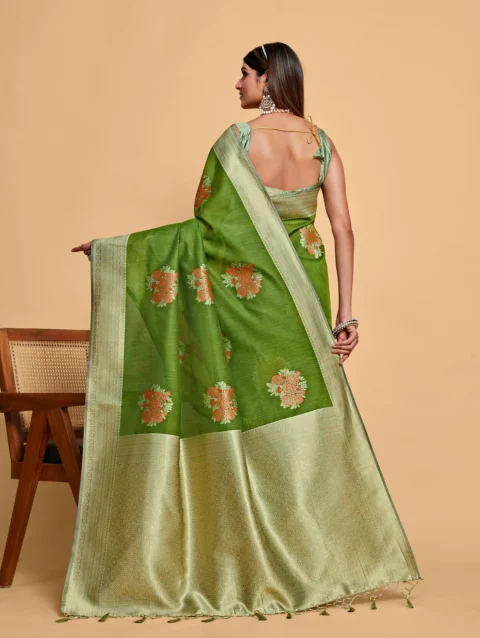 Women’s Woven Design Banarasi Lenin Saree With Blouse Piece 4